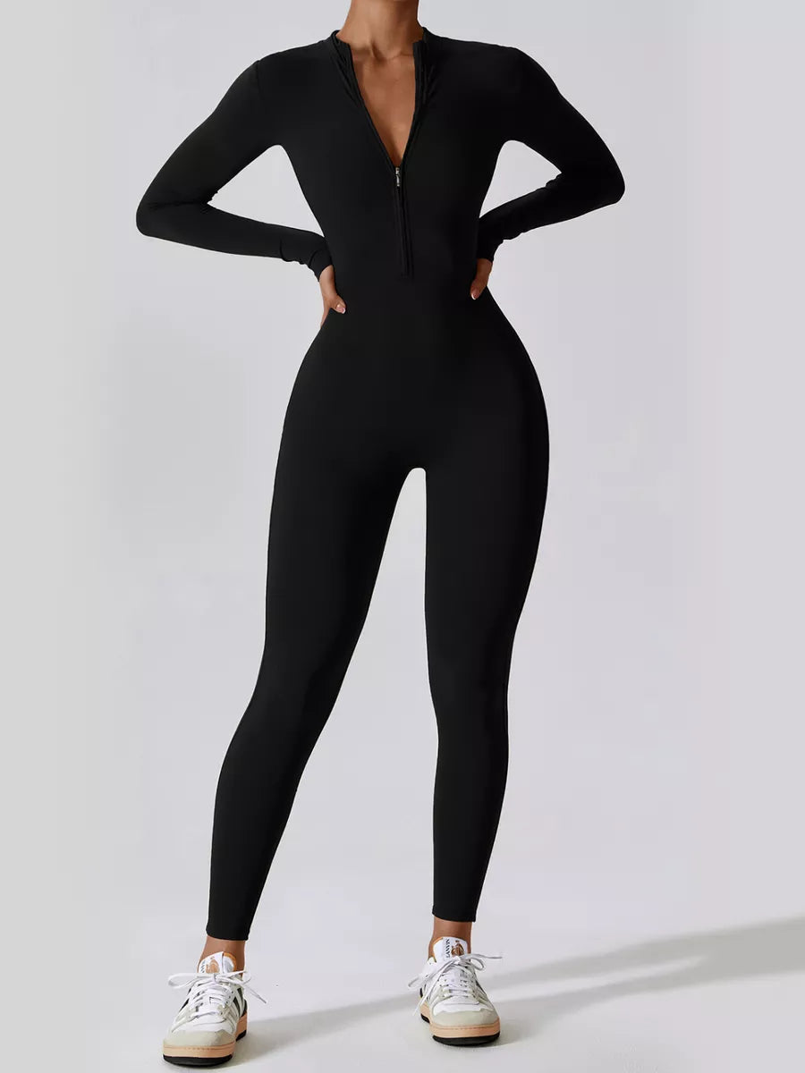 This seamless long sleeve jumpsuit is designed to provide a smooth, flattering fit while offering comfort and flexibility throughout the day. The stretchy fabric contours naturally to your body, creating a sculpted look without restricting movement, making it ideal for both active and casual wear.